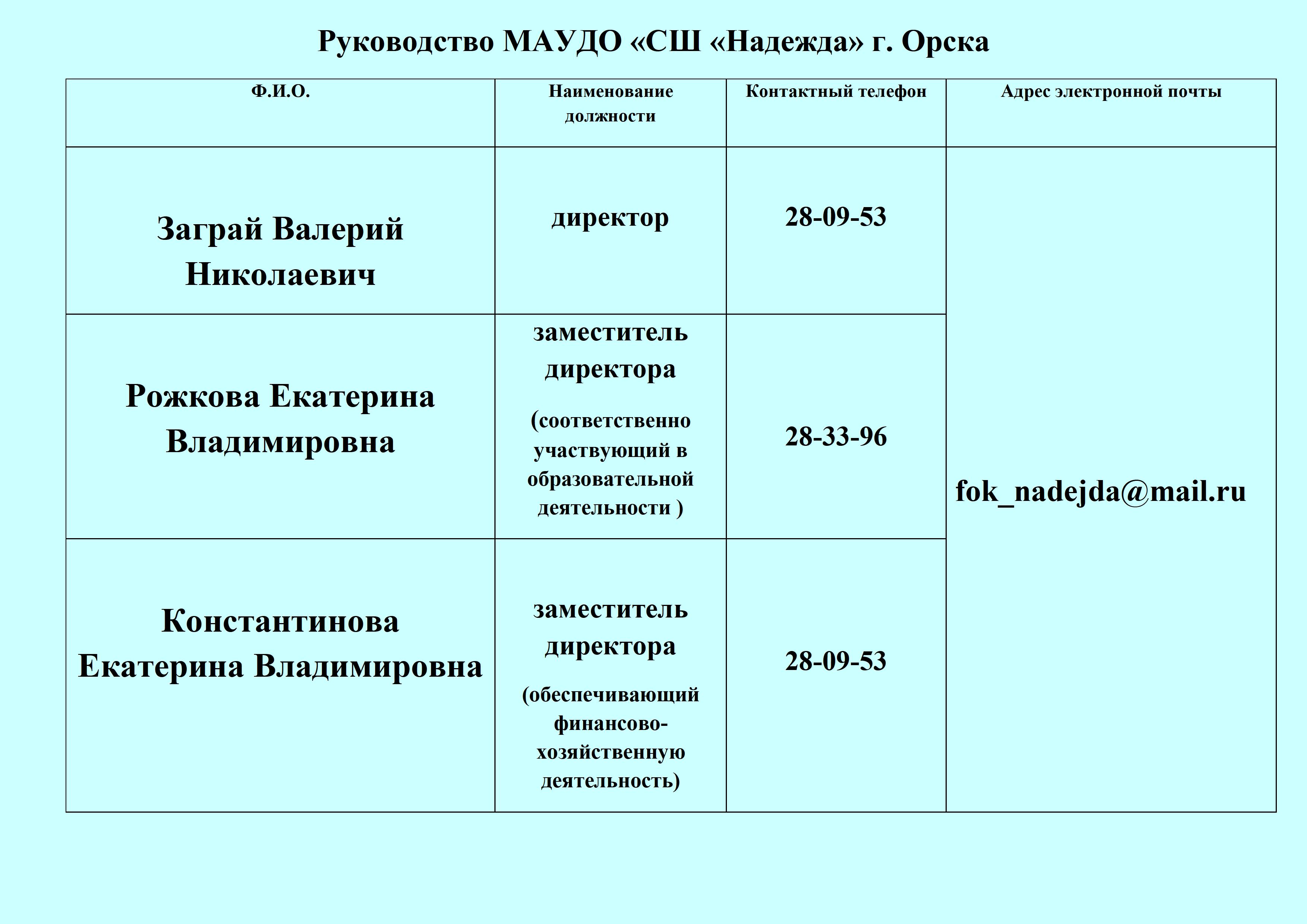 Руководство. Педагогический состав МАУДО СШ надежда Руководство. Педагогический состав Информация о материале Родительская категория: ROOT Категория: Документы